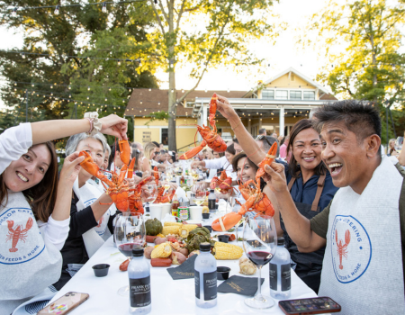 Enjoy a bubbles reception upon arrival alongside exquisite passed hors d'oeuvres. As the sun sets behind the Mayacamas Mountains, settle in on the Miller House Lawn for a family-style dinner of fresh Maine lobster, shellfish, Louisiana hot links, and more paired with our Lewis Vineyard Chardonnay and other Frank Family favorites.