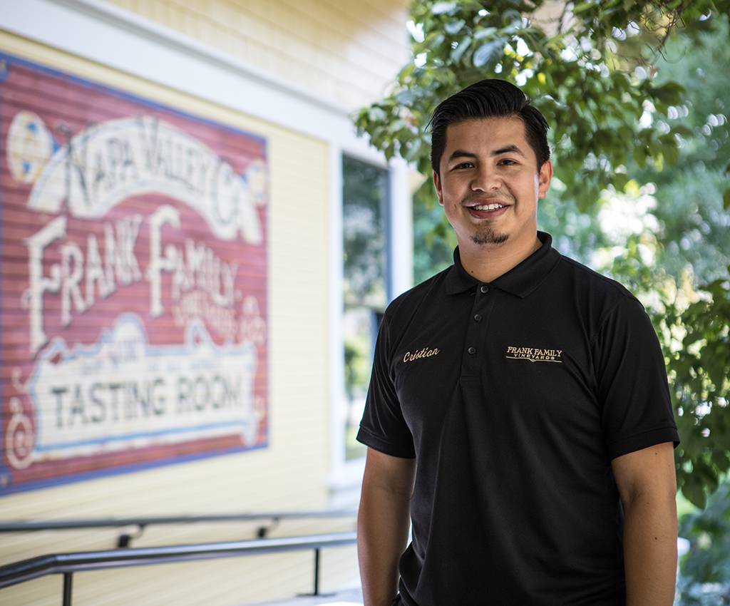Our tasting room staff is part of the extended Frank Family, who will make you feel like a member, too. Their passion for wine is met with industry knowledge, and they're always eager to share both with guests. Priority focus is put on creating the best tasting experience in Napa Valley, where time spent here is really unlike anywhere else.