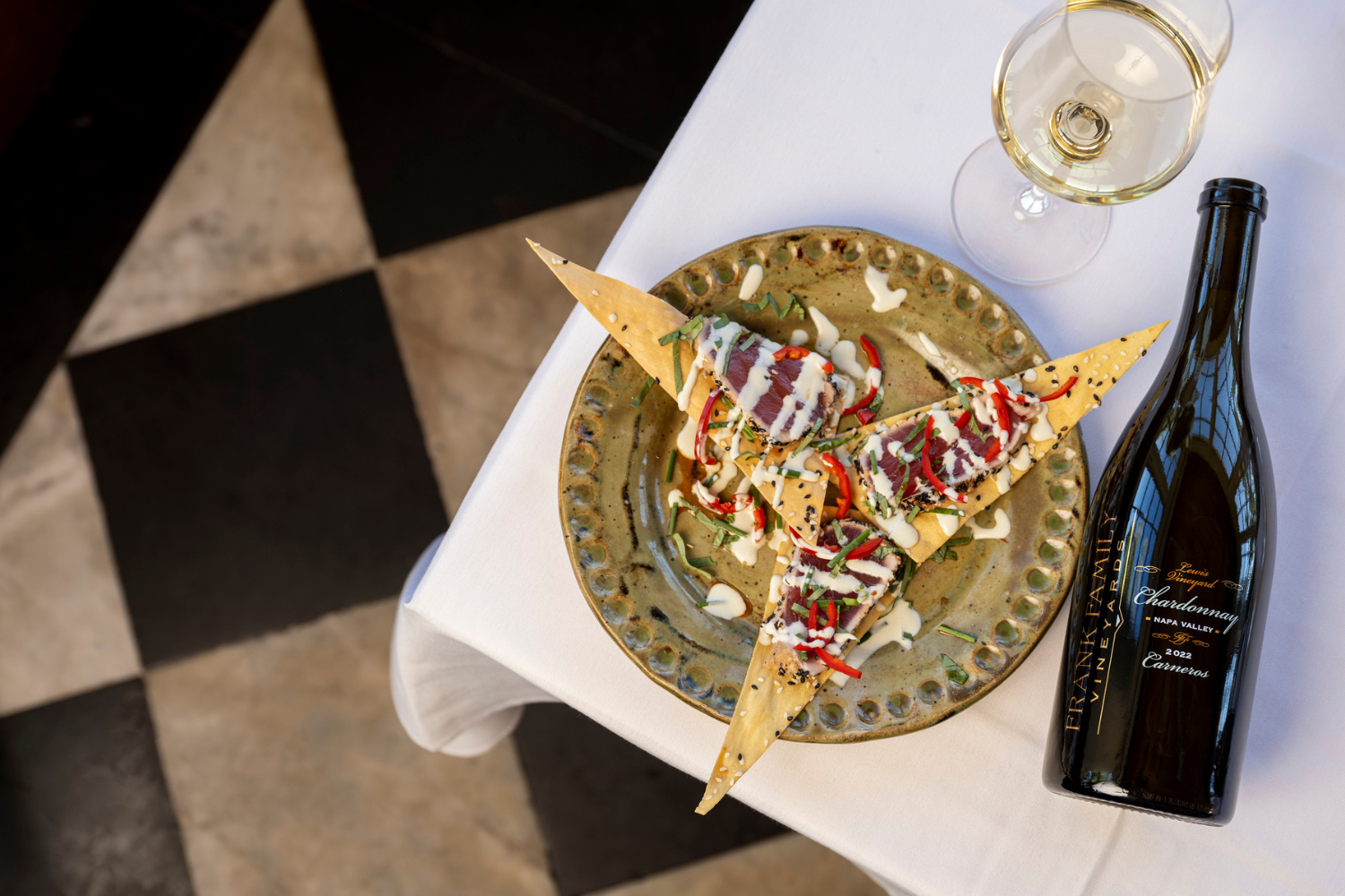 Coming entirely from our estate vineyard in Carneros, this beautifully layered and complex Chardonnay abounds with notes of peach, pineapple, and jasmine. Its fruit character is complemented on the palate with additional flavors of vanilla bean and fluffy nougat, finishing bright with a wave of Meyer lemon.